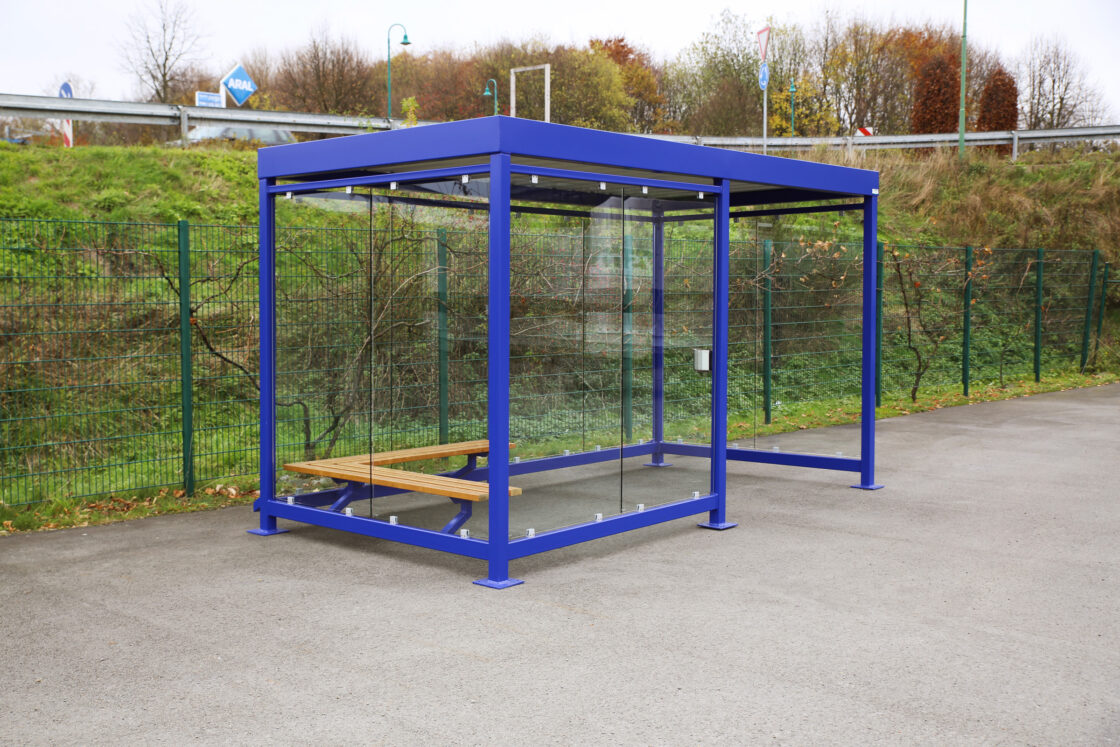 Auf dem Fabrikhof oder vor dem Bürogebäude: Unsere Raucherunterstände und Raucherüberdachungen sind schnell aufgestellt und solide aus feuerverzinktem Stahl gefertigt.